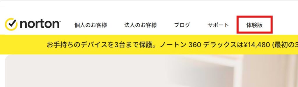 「ノートン」と検索して最初に出てくるページにはないのですが、別ページから30日間無料体験を申し込めるページがありました!(最初に出てくるページでも、しばらく見ていると無料体験の案内が出ます)
